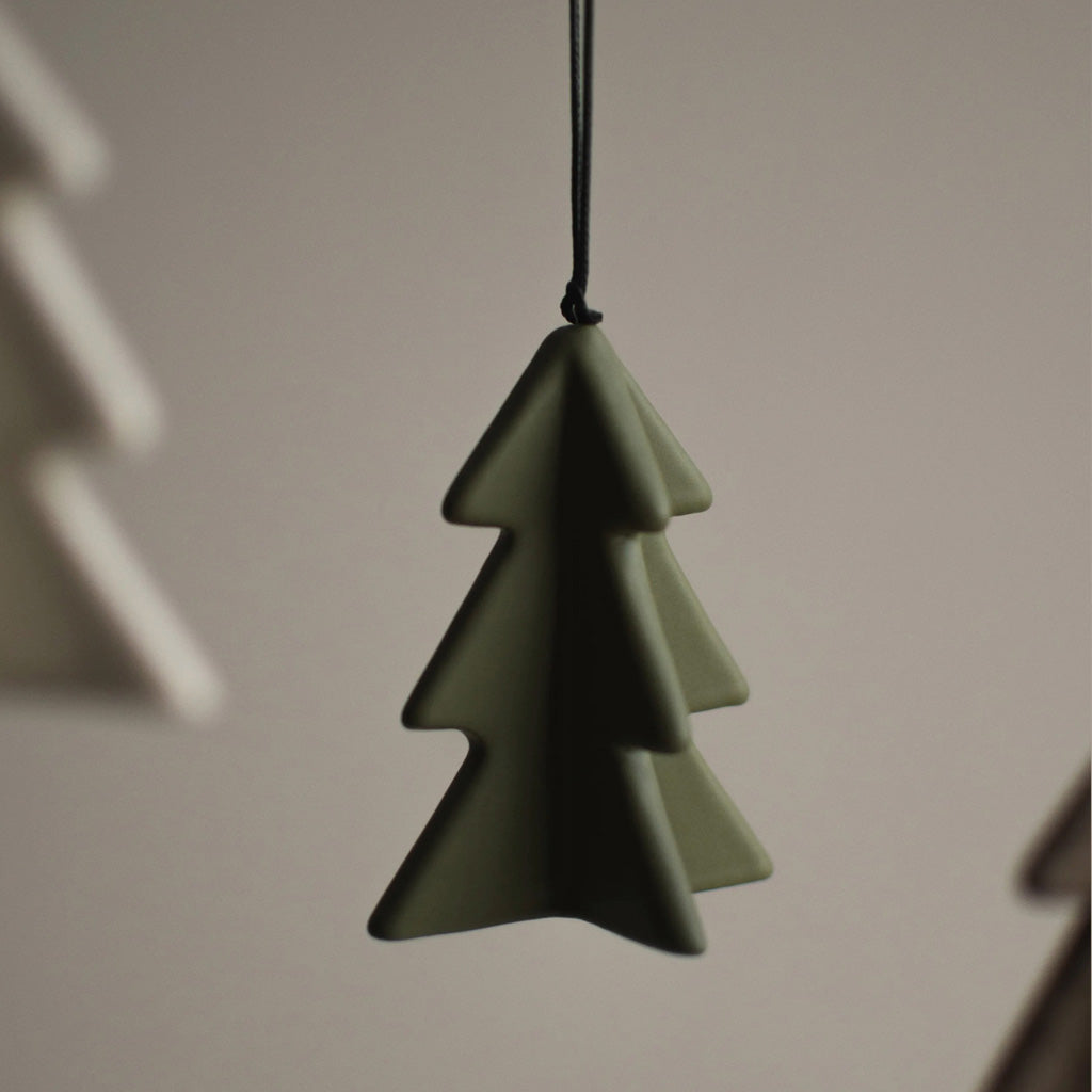 in Form eines schlichten Keramikbäumchens. Zum Aufhängen am Weihnachtsbaum, an dekorativen Zweigen oder als liebevolles Detail an Geschenken.