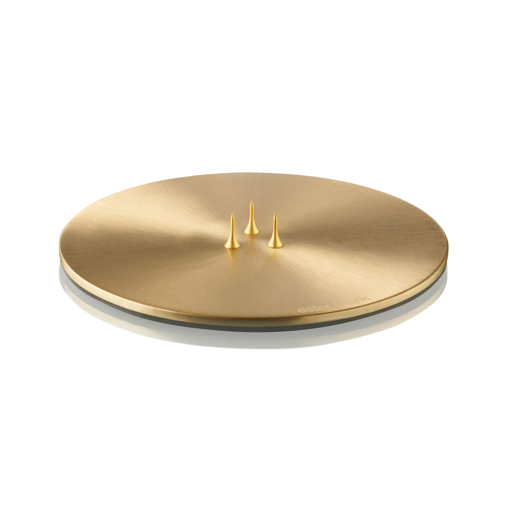 Farbe: gold matt Drchmesser: 12 cm, für Stumpen- und Kegelkerzen Material: Edelstahl Pflegehinweis: Vermeiden Sie Reinigungs- und Spülmittel. Zum Reinigen mit einem trockenen Tuch abwischen.