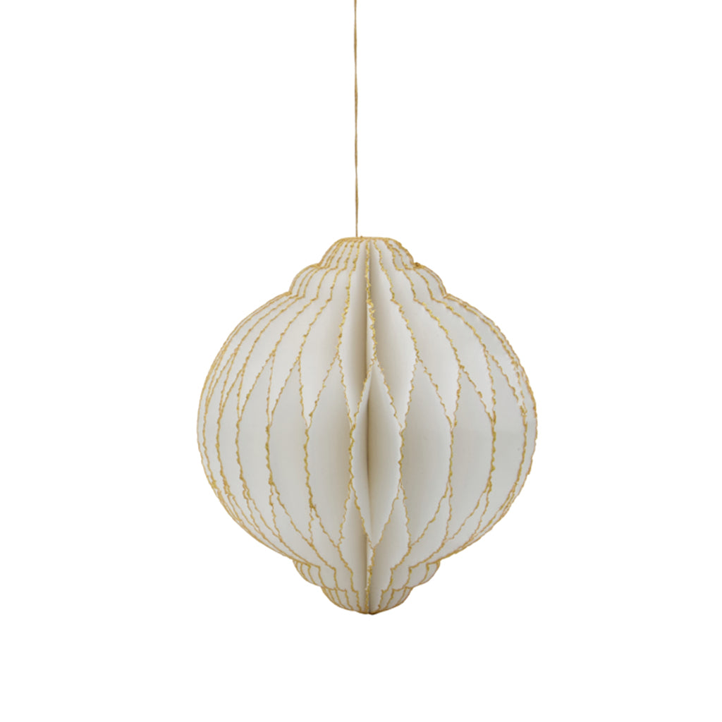 4er-Set handgefertigter Weihnachtsornamente in einem elegante Off-White-Ton mit goldenen Glitzerkanten. Perfekt zum Aufhängen an Zweigen oder als Dekoration in einer Schale.