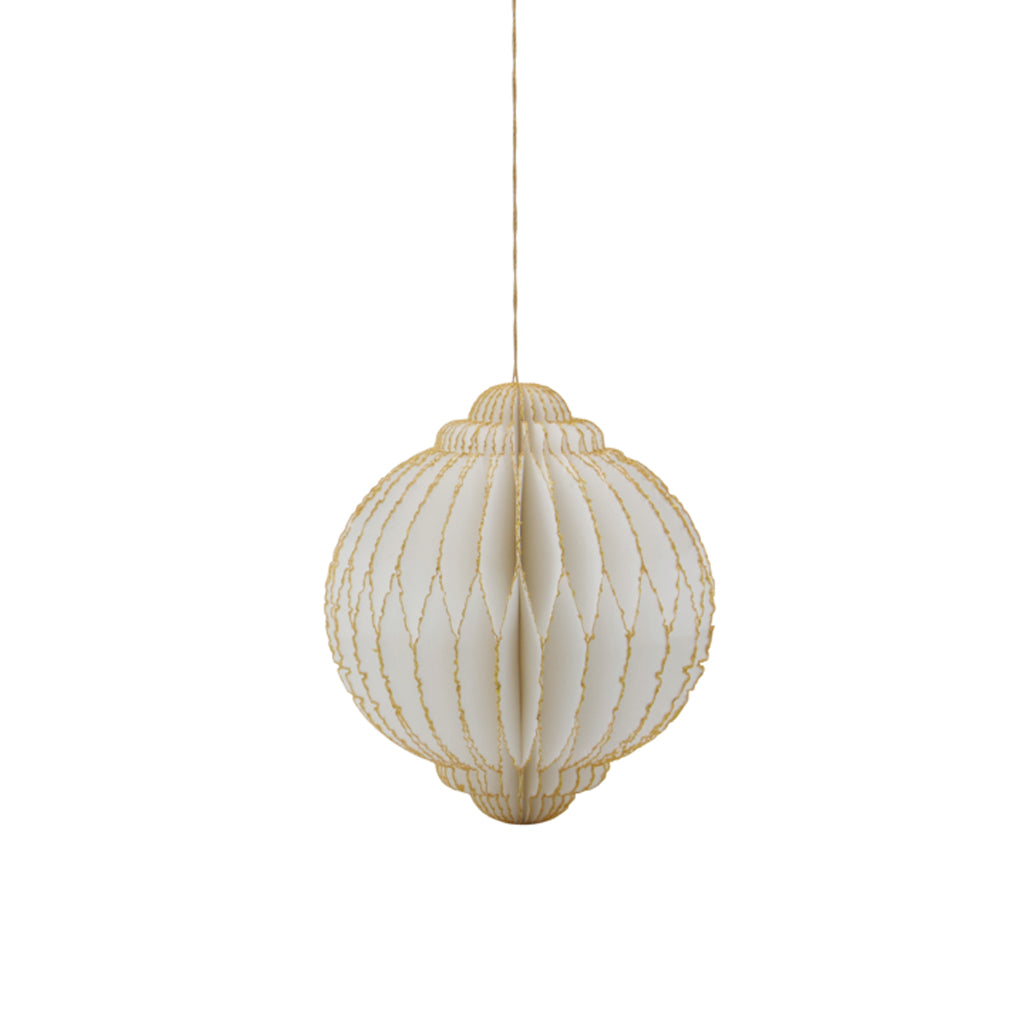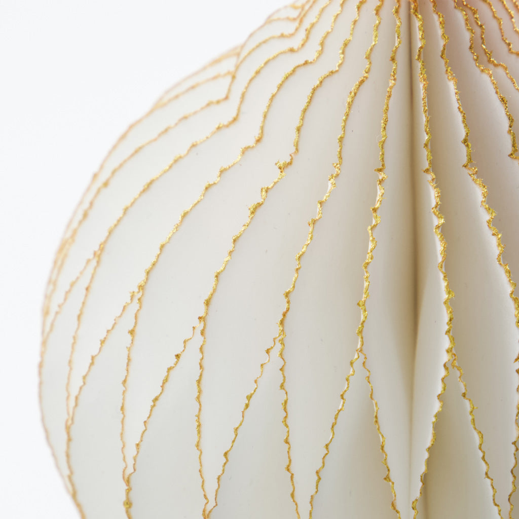 4er-Set handgefertigter Weihnachtsornamente in einem elegante Off-White-Ton mit goldenen Glitzerkanten. Perfekt zum Aufhängen an Zweigen oder als Dekoration in einer Schale.