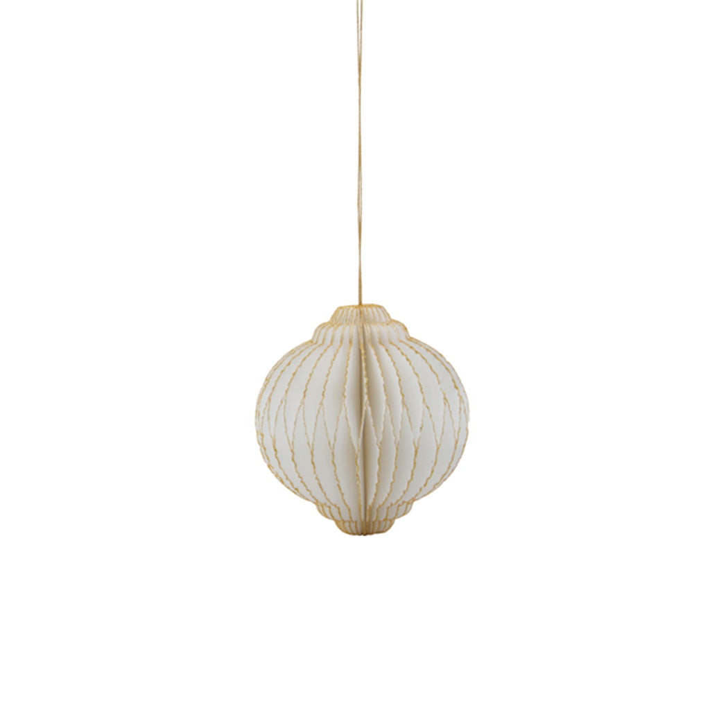 4er-Set handgefertigter Weihnachtsornamente in einem elegante Off-White-Ton mit goldenen Glitzerkanten. Perfekt zum Aufhängen an Zweigen oder als Dekoration in einer Schale.