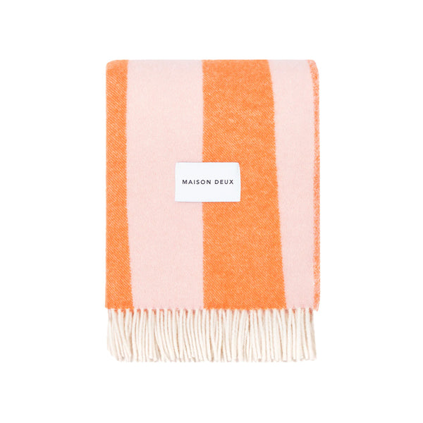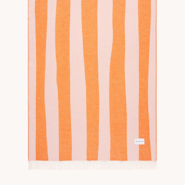 Decke aus 100 % neuseeländischer Wolle, jacquardgewebt, mit Fransen an den kurzen Seiten. Die Rückseite ist spiegelverkehrt. Mit ihren Abmessungen von 130 x 200 cm ist sie groß genug, um auch Platz für zwei zu bieten.