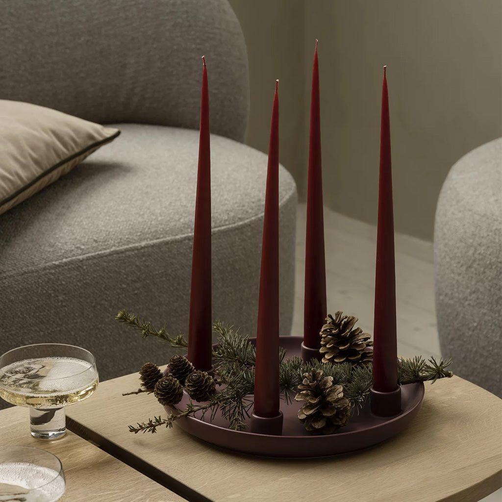 Schlichter Adventskerzenständer aus Steingut mit matter Glasur.