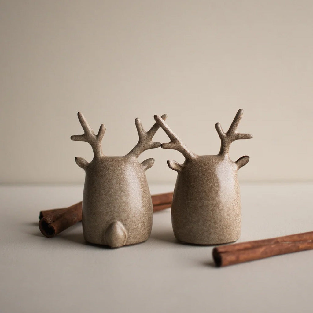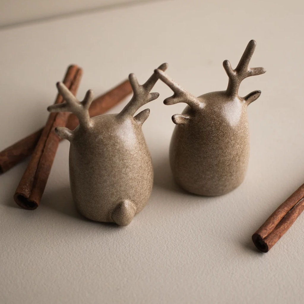 Charmante Dekofiguren im minimalistischen Stil. Diese beiden schlichten, abstrakt gestalteten Rentiere aus Keramik bringen nordischen Charme in Dein Zuhause. Ob auf dem Sideboard, der Fensterbank oder als Teil Deiner Tischdekoration – sie sind zeitlos und vielseitig einsetzbar.