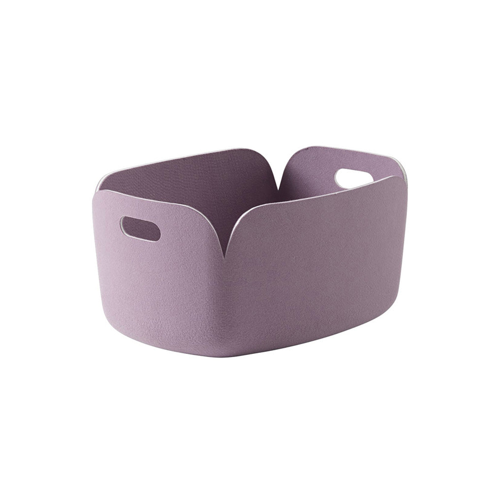 Hoher Aufbewahrungskorb aus recycelten PET-Flaschen in Form von filzartigen Fasern und einem festen Kern. Durch seine schlichte, weiche Formgebung ist er ein praktischer Blickfang, der zur Aufbewahrung von allem möglichen, wie z.B. Decken, Zeitschriften, Wäsche, oder auch Spielzeug dient.