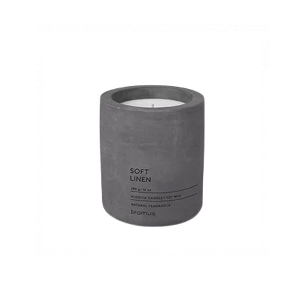 Duftkerze in einem dunkelgrauem Betongefäß. Durch die Verwendung von natürlichem Sojawachs ist die Kerze frei von Schadstoffen, umweltfreundlich und brennt besonders rußarm bei einer langen Brenndauer von 55 Stunden.