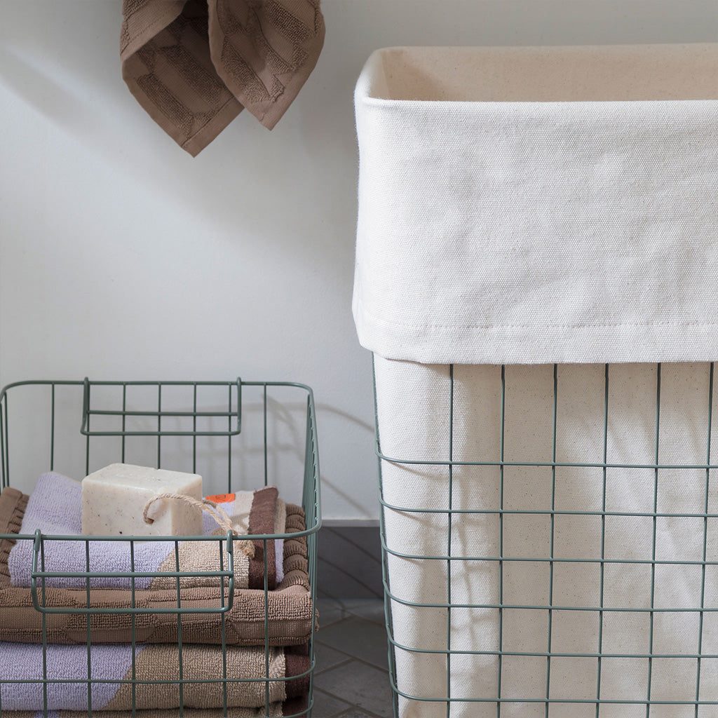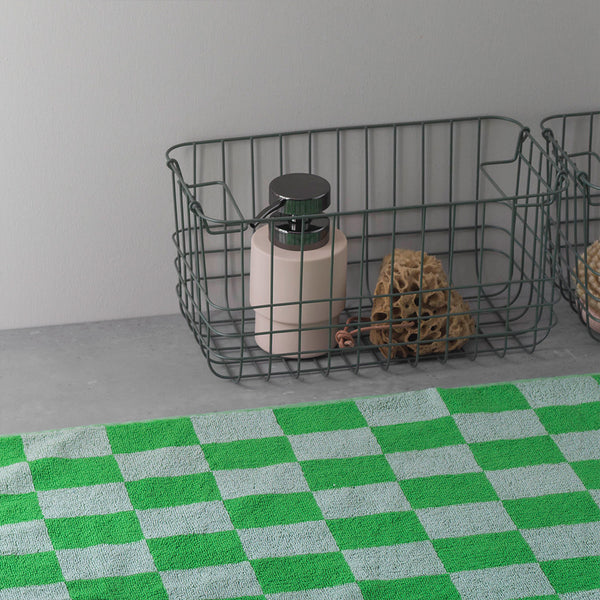 Ein stilvoller Drahtkorb aus Metall in einem gedeckten Grünton. Mit seiner praktischen Größe kann der vielseitige Korb vieles aufnehmen, von Waschlappen und Kosmetikprodukten im Badezimmer bis hin zur Organisation von Büromaterial im Büro oder Handschuhen, Mützen und Schals im Flur. Die beiden praktischen Griffe erleichtern das Bewegen des Korbs, und im zusammengeklappten Zustand können mehrere Körbe gleicher Größe problemlos übereinander gestapelt werden, um eine optisch leichte und inspirierende Aufbewahrungslösung zu erhalten.