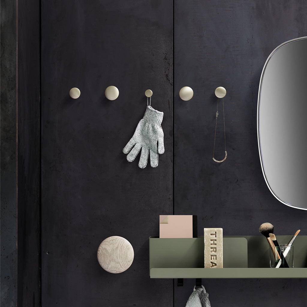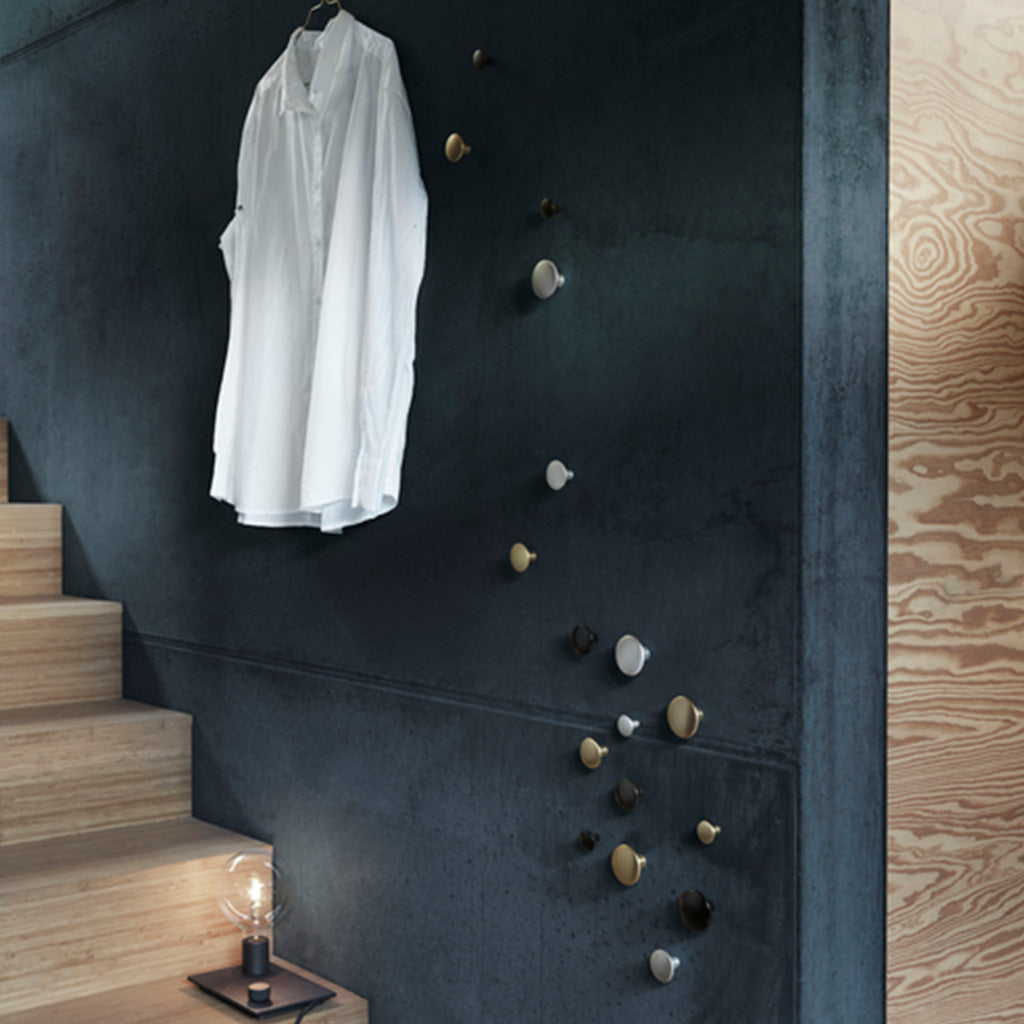 Die Dots sind eine spielerische Interpretation der herkömmlichen Kleiderhaken und verleihen jedem Raum und/oder Möbelstück einen modernen und industriellen Touch. Sie können nicht nur als Wandhaken,  sondern auch als Möbelknopf/Griff an Schubladen oder Schranktüren verwendet werden.